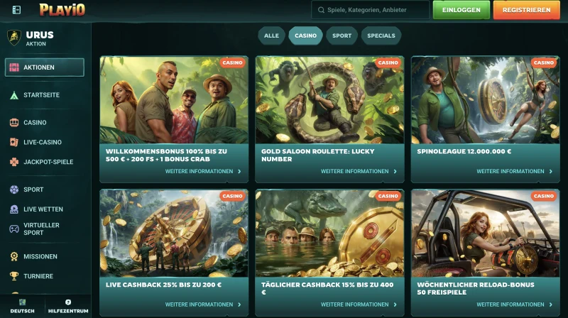 Nach deiner ersten Einzahlung findest du weiterhin wiederkehrende Promotions im Bereich Promotions. Bei PlayIo Casino basieren diese Angebote auf einfachen Aktionen, etwa der ersten Einzahlung innerhalb eines festgelegten Zeitfensters oder dem Spielen am Wochenende. Bevor du einen PlayIo Bonus bestätigst, empfehlen wir, die Mindesteinzahlung, den Spielbeitrag und ob ein manueller Opt-in nötig ist, zu prüfen. Wenn du vor allem am Wochenende spielst, siehst du in der Regel die höchste Match-Größe in der Wochenend-Deal-Auswahl.